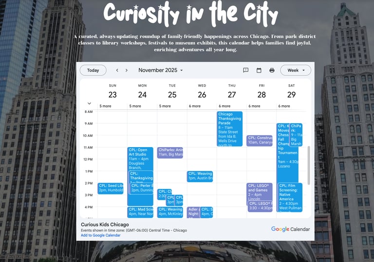 Curious Kids Chicago is a vibrant learning hub for families and educators who believe the city itself is our classroom — full of stories, flavors, art, and history waiting to be explored.